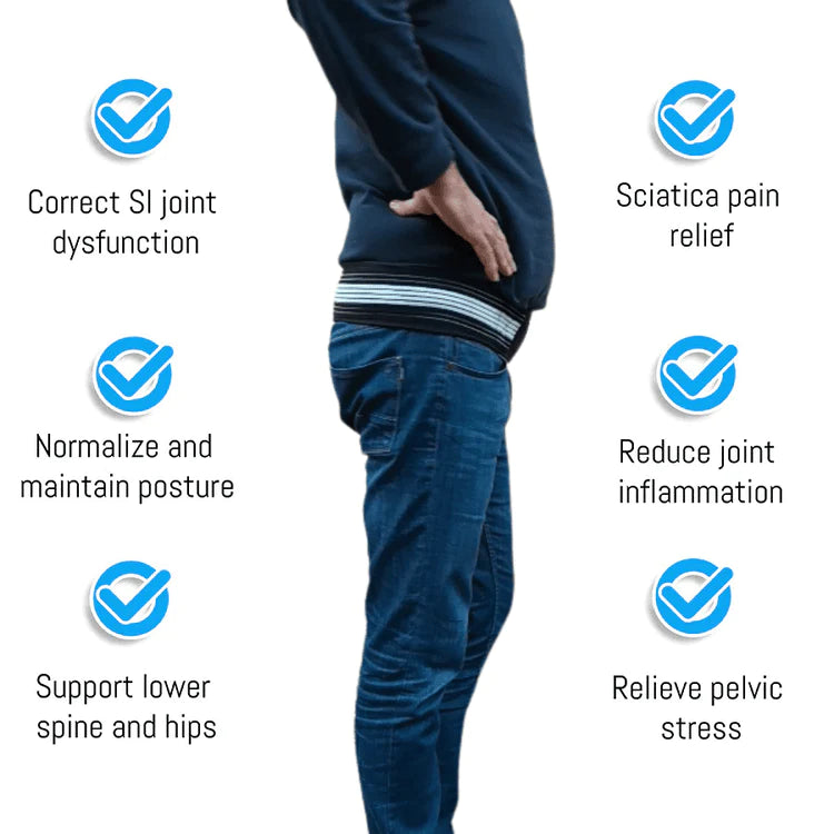 Dramatically reduce or eliminate chronic joint pain caused by an inflamed or hyper-mobile Sacroiliac or SI joint. Physical therapists and chiropractors recommend the SI belt to alleviate pelvic, lower back and leg nerve pain. For the strongest and fastest results, wear the SI belt continuously for the first two weeks, synched snugly but not too tight!